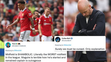 Seorang penggemar lain setuju, menulis: "Pertahanan dari Harry Maguire ini benar-benar mengingatkan pada hari-hari terburuknya dalam seragam United. United benar-benar dibully." Dan satu lagi menuntut: "Anda tidak bisa bilang kami adalah klub serius dan memberikan kontrak baru kepada Maguire. Jual dia di musim panas."