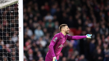 Setelah gagal menyelamatkan tembakan dari Harry Wilson, Vicario tampak sangat kecewa. Kekalahan ini menambah tekanan bagi penjaga gawang yang baru bergabung dengan Spurs.